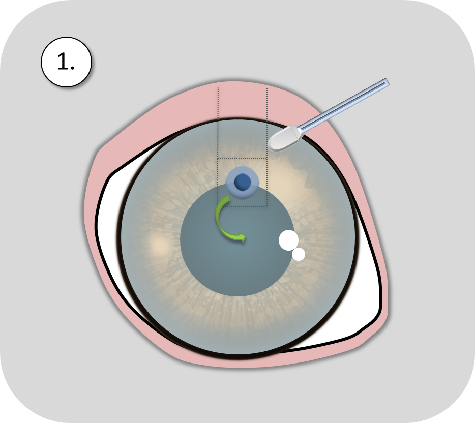Der erkrankte Hornhautbereich wird für die Transplantation vorbereitet.