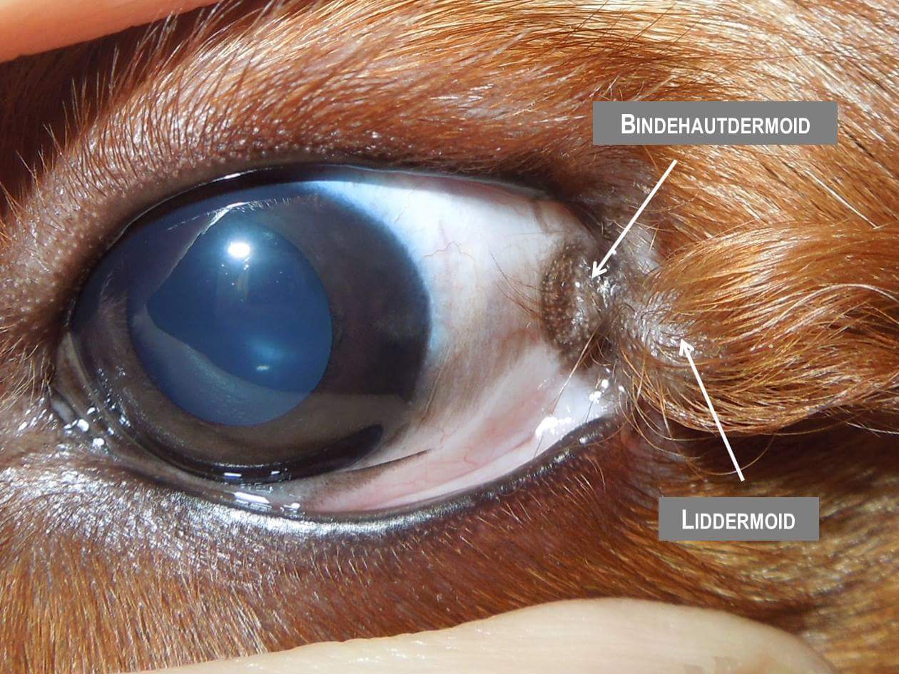 Dermoide sind versprengte Hautinseln. Es handelt sich um eine angeborene Missbildung. Sie können sich auf der Hornhaut (korneales Dermoid), der Bindehaut (konjunktivales Dermoid) oder dem Lidrand (Lidranddermoid) befinden. Eine Hornhautbeteiligung ist sehr häufig.
