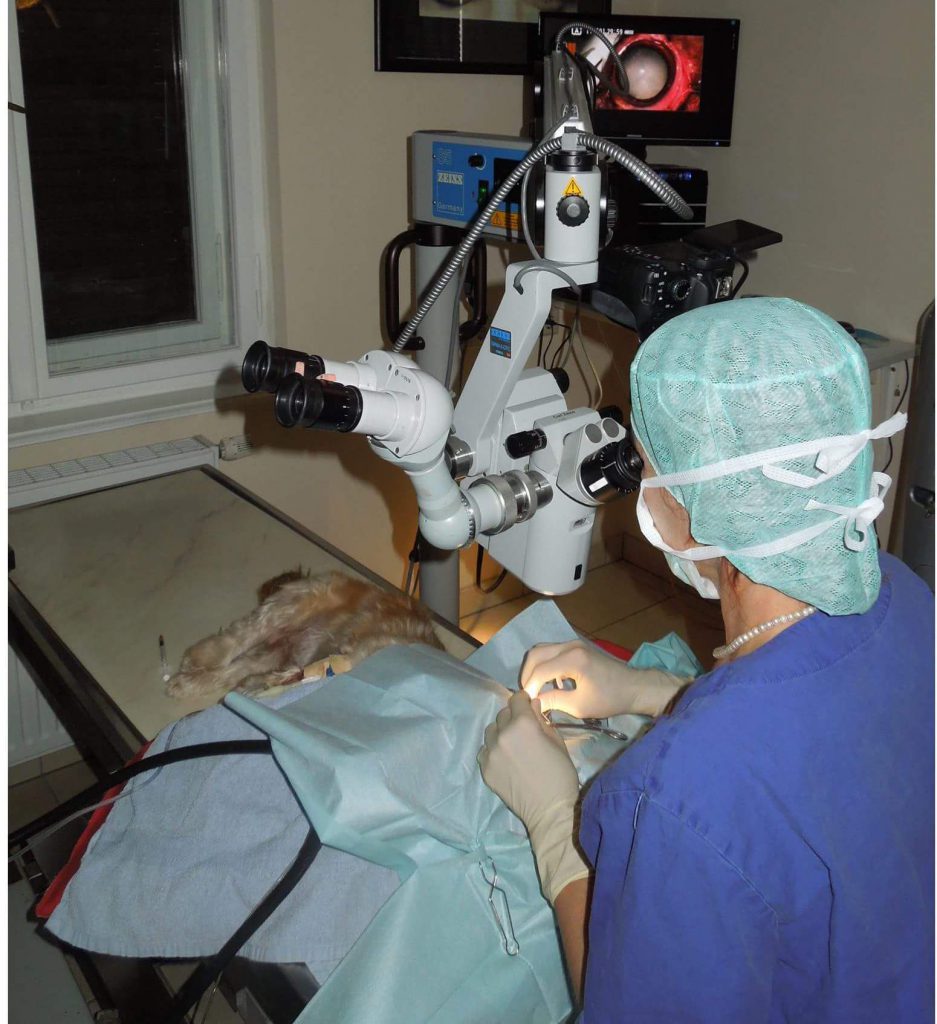 Die Op findet unter dem Mikroskop statt.