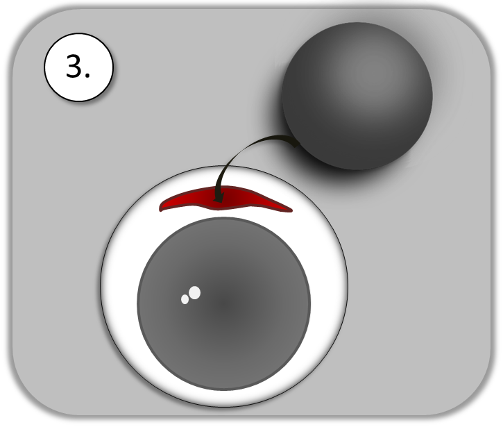 Eine Silikonkugel wird in den Augapfel eingebracht.