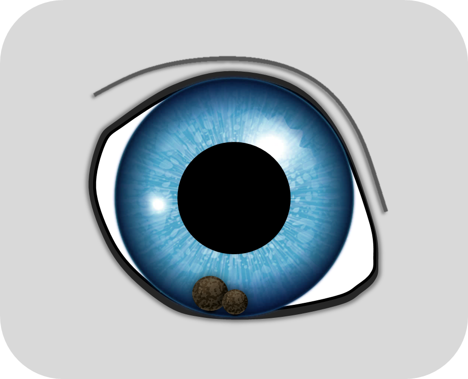 Kleine Iriszysten in typischer Position.