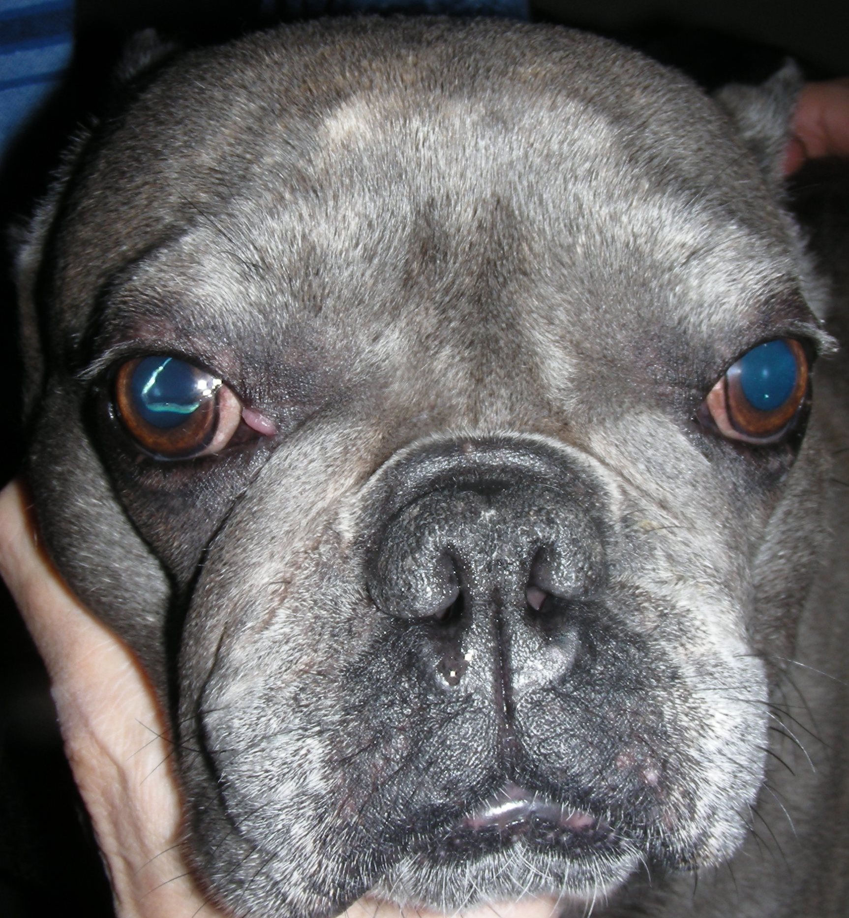 Kiras Tumor wurde kurze Zeit später in einer Operation entfernt und das Lid mit einer speziellen Naht verschlossen. Die pathologische Untersuchung konnte zunächst einen bösartigen Tumor nicht ausschließen. Eine gezielte Zusatzuntersuchung der veränderten Zellen zeigte schlussendlich glücklicherweise doch ein gutartiges Histiozytom. Diese Tumorart kann überall am Körper entstehen, ist typischerweise rosa und haarlos und kann sogar von allein verschwinden. Darauf kann aber am Augenlid nicht gewartet werden, da während des rasanten Wachstums Gewebe zerstört wird.