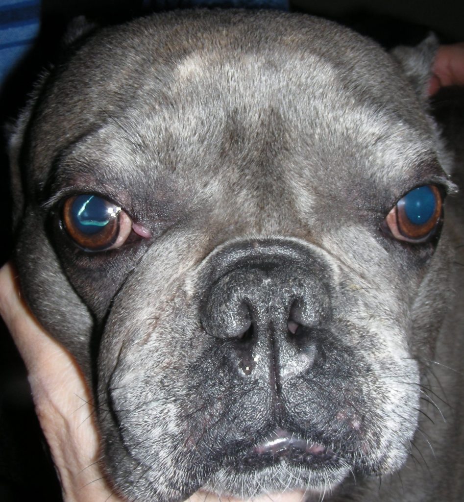 Kiras rechtes Auge mit Tumor am Oberlid.