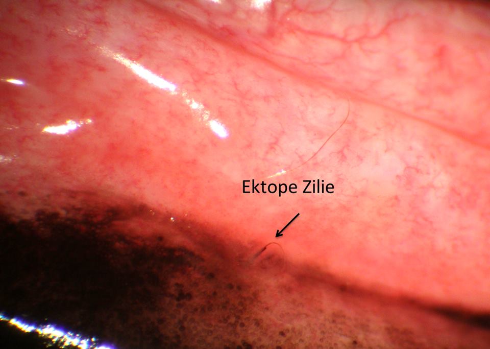 Ektope Zilie in der Bindehaut