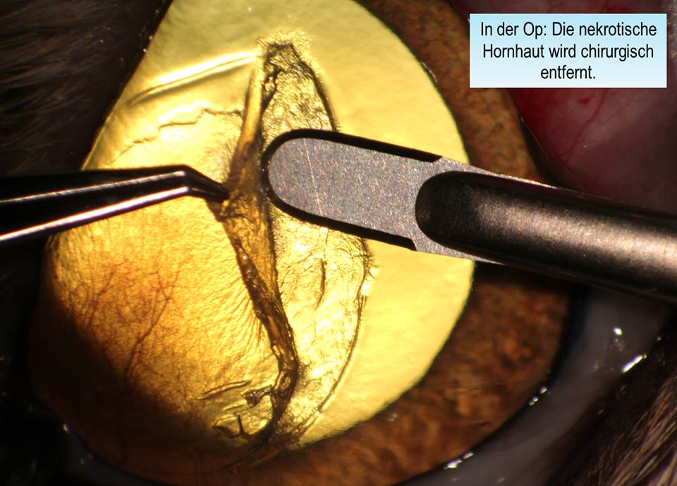 Die erkrankte Hornhaut wird mit einem Skalpell entfernt.