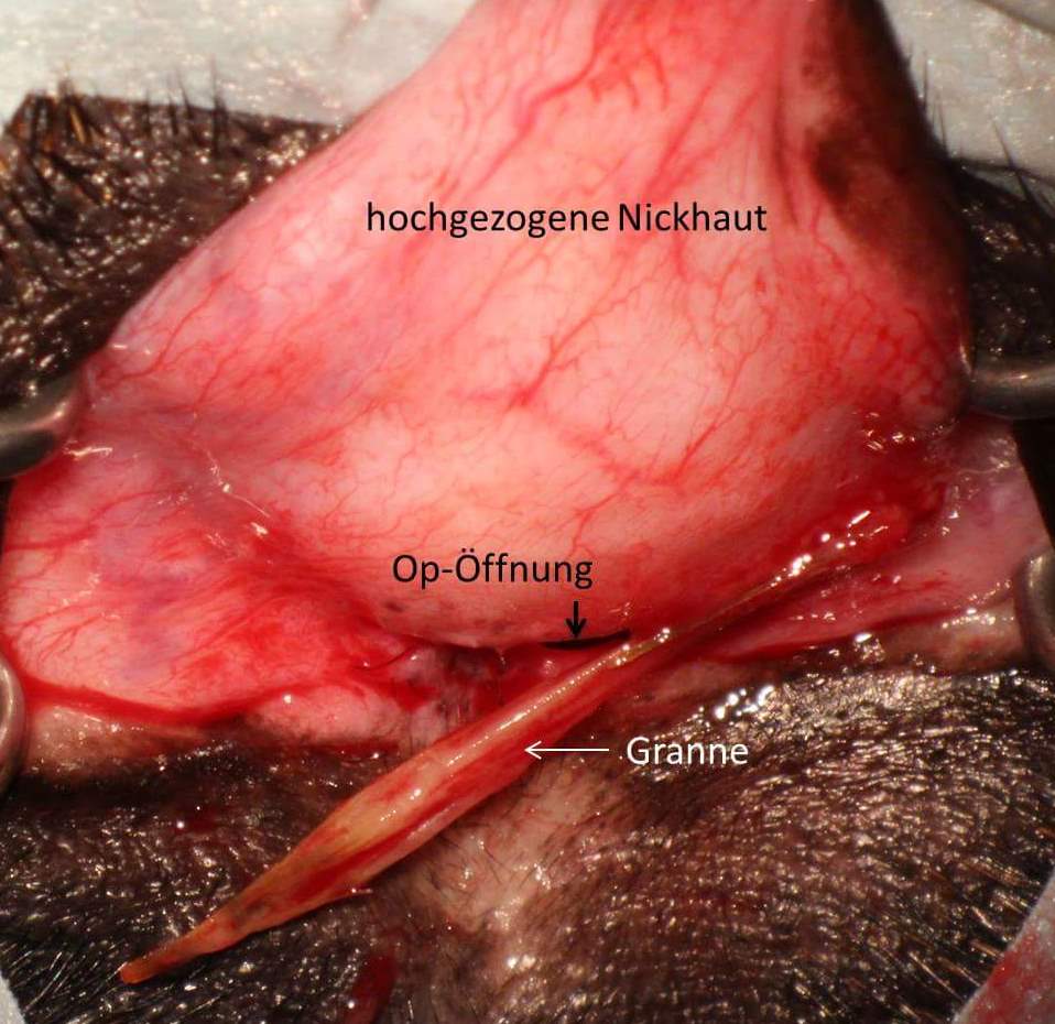 Chirurgische Entfernung einer Granne aus dem Tränensack.