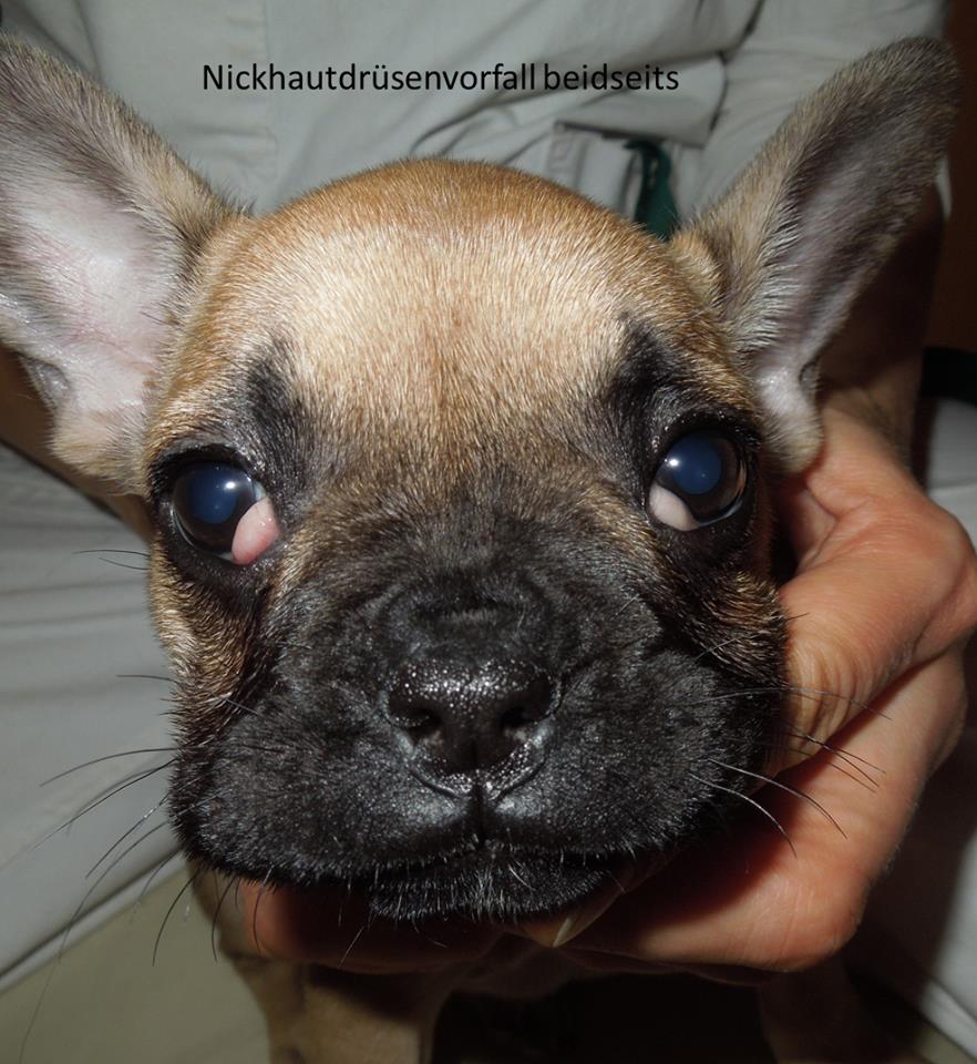 Vorheriges BildNächstes Bild 14705804_937178156388851_5162106211330369272_n Französische Bulldogge mit beidseitigem Nickhautdrüsenvorfall.