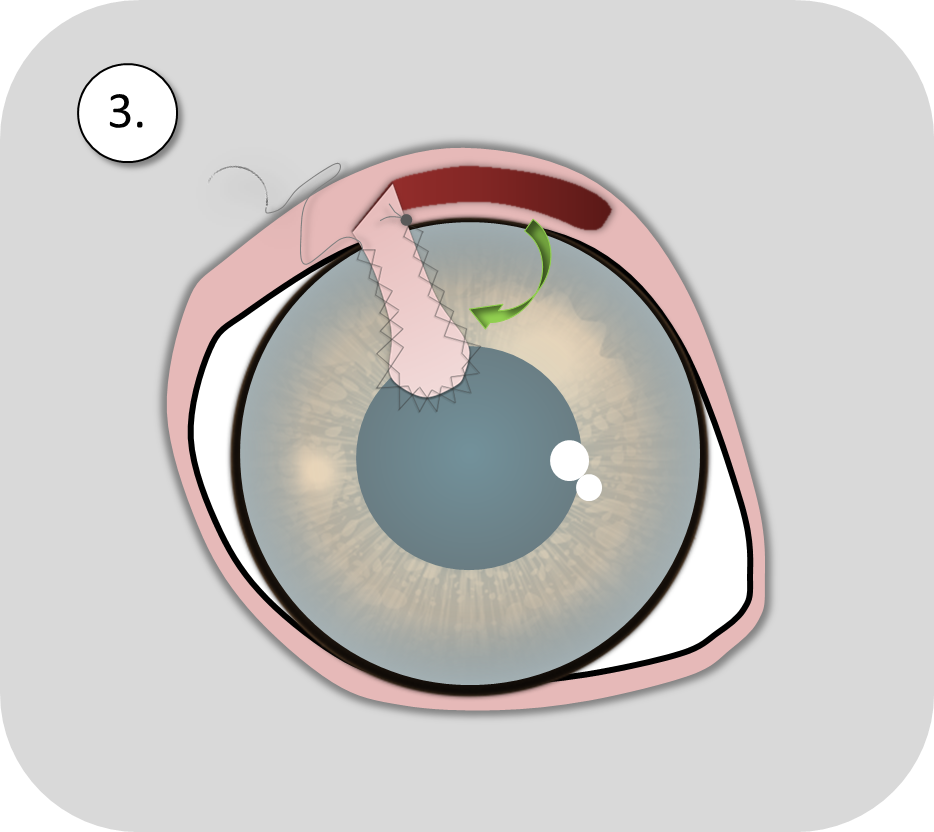 Die Bindehaut wird in die Hornhaut eingenäht.