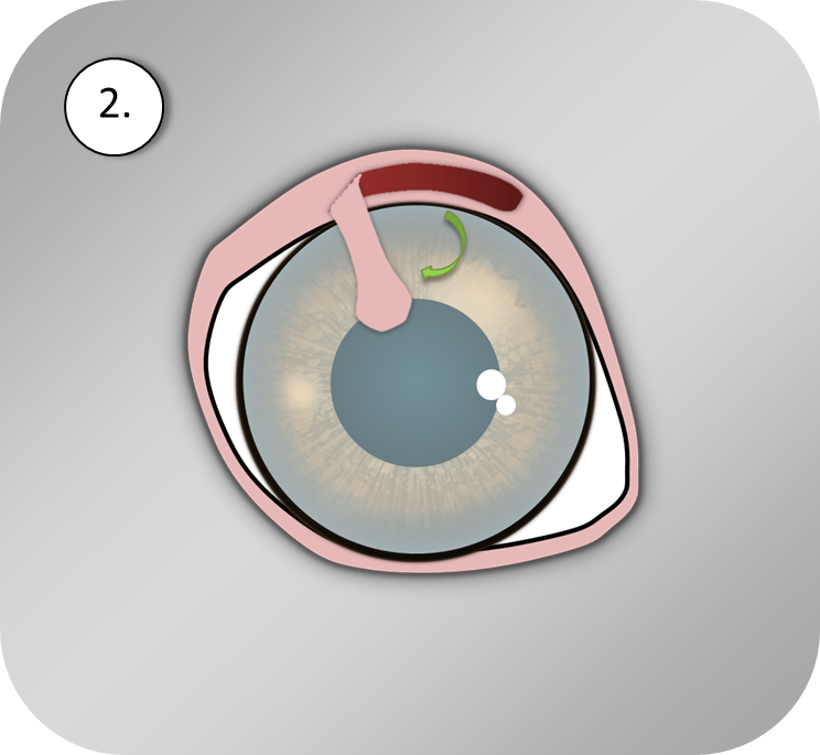 Das Transplantat wird über den vorbereiteten Hornhautdefekt geschwenkt.
