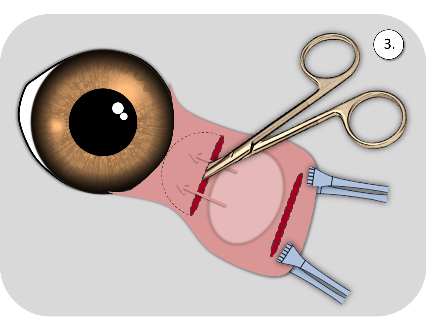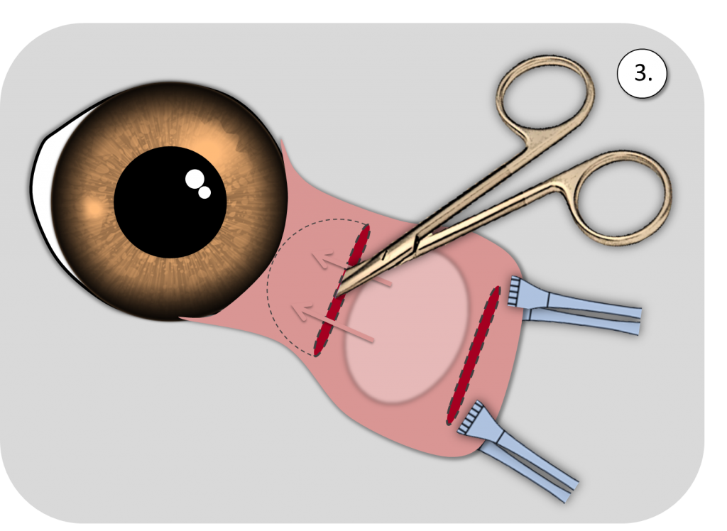 Präparation einer tiefen Tasche, in der die Drüse versenkt wird.