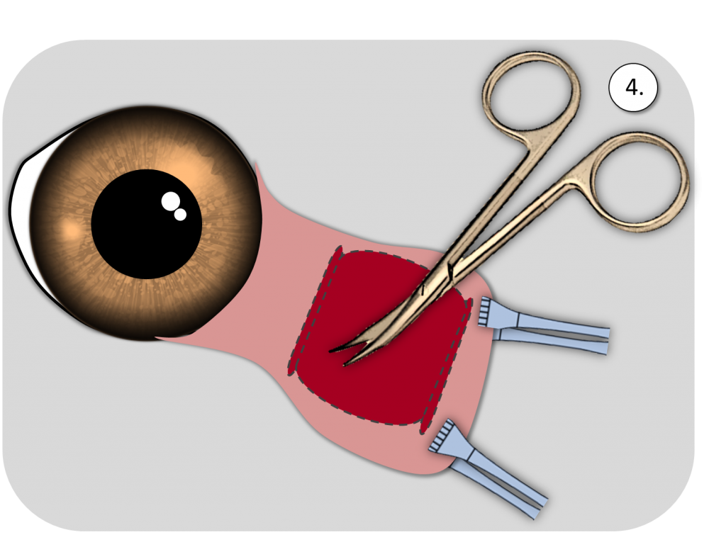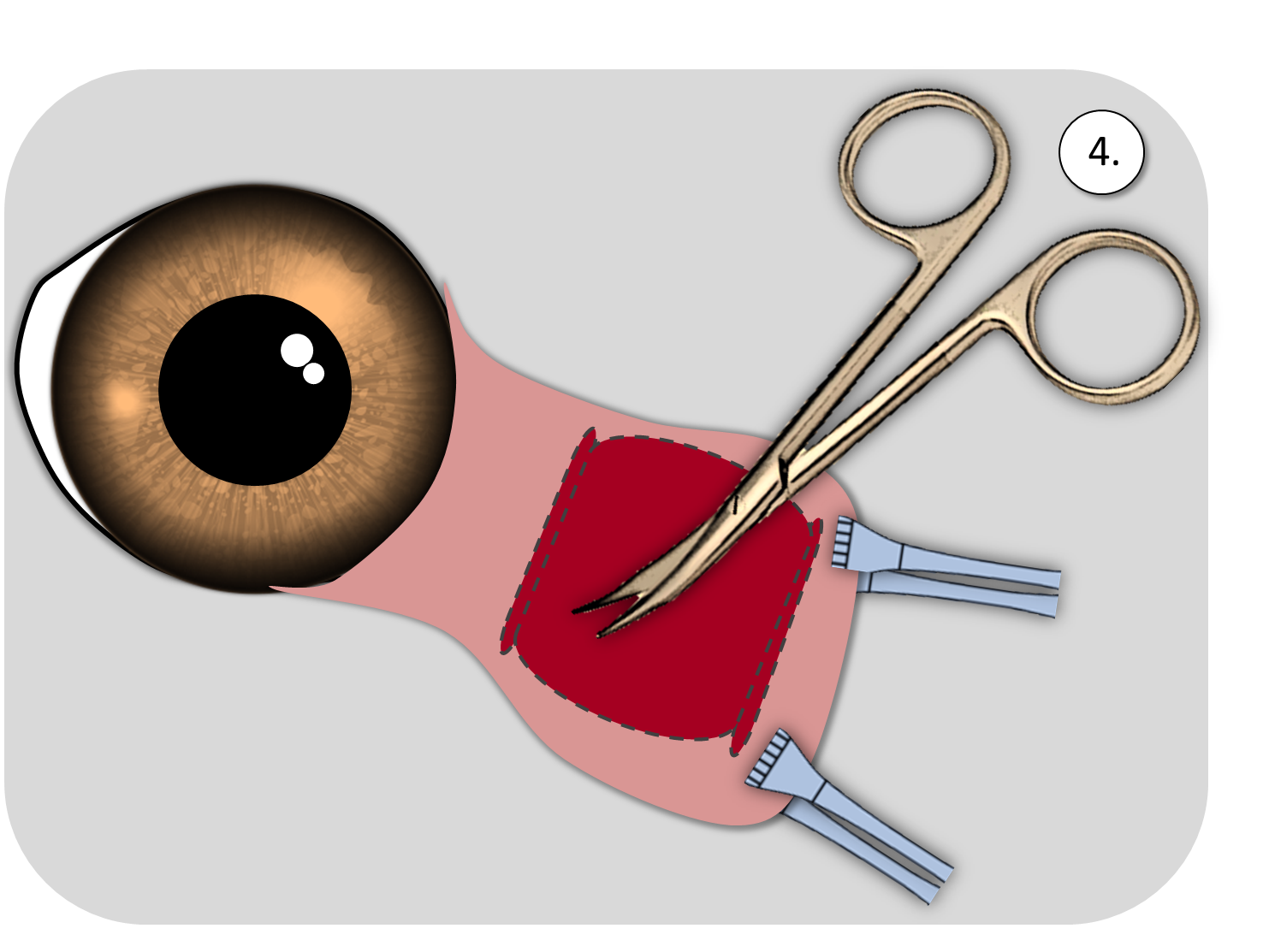 Entfernung der Schleimhaut zwischen den Schnitten.