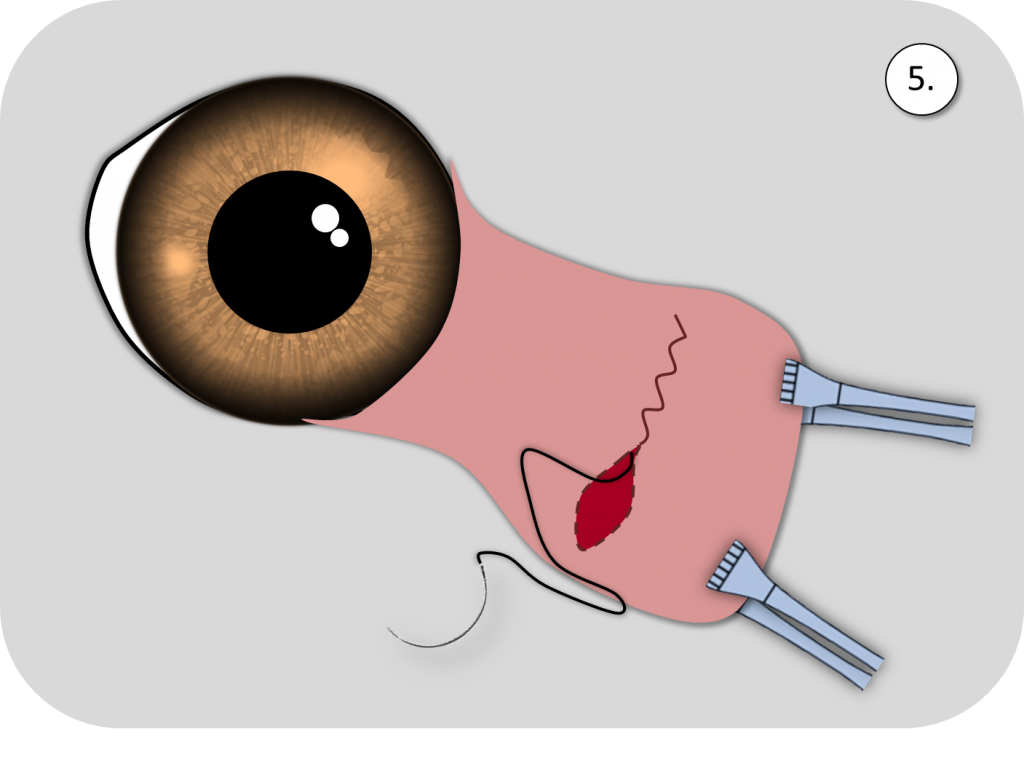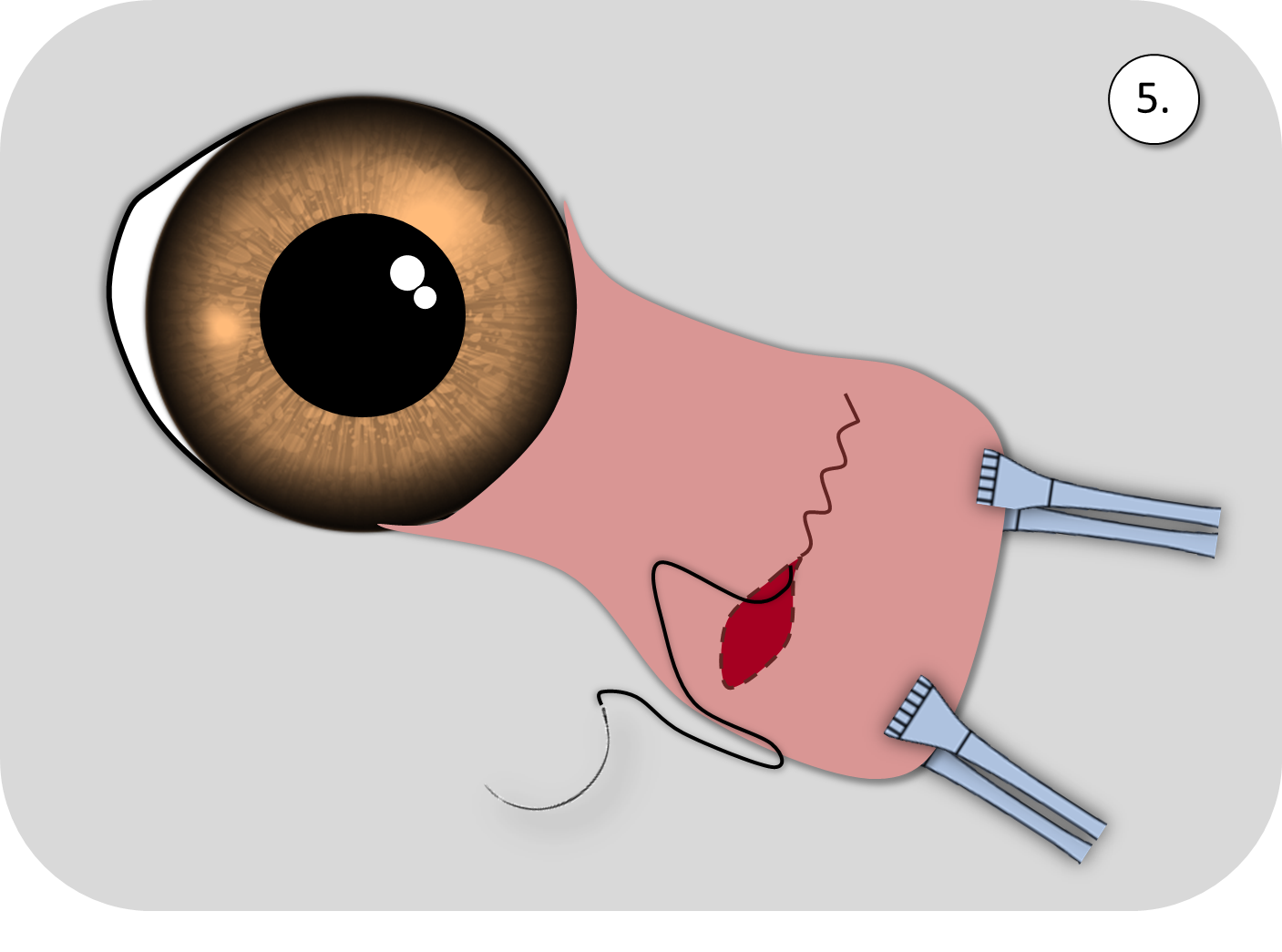 Fortlaufende Wundnaht mit resorbierbarem Faden.