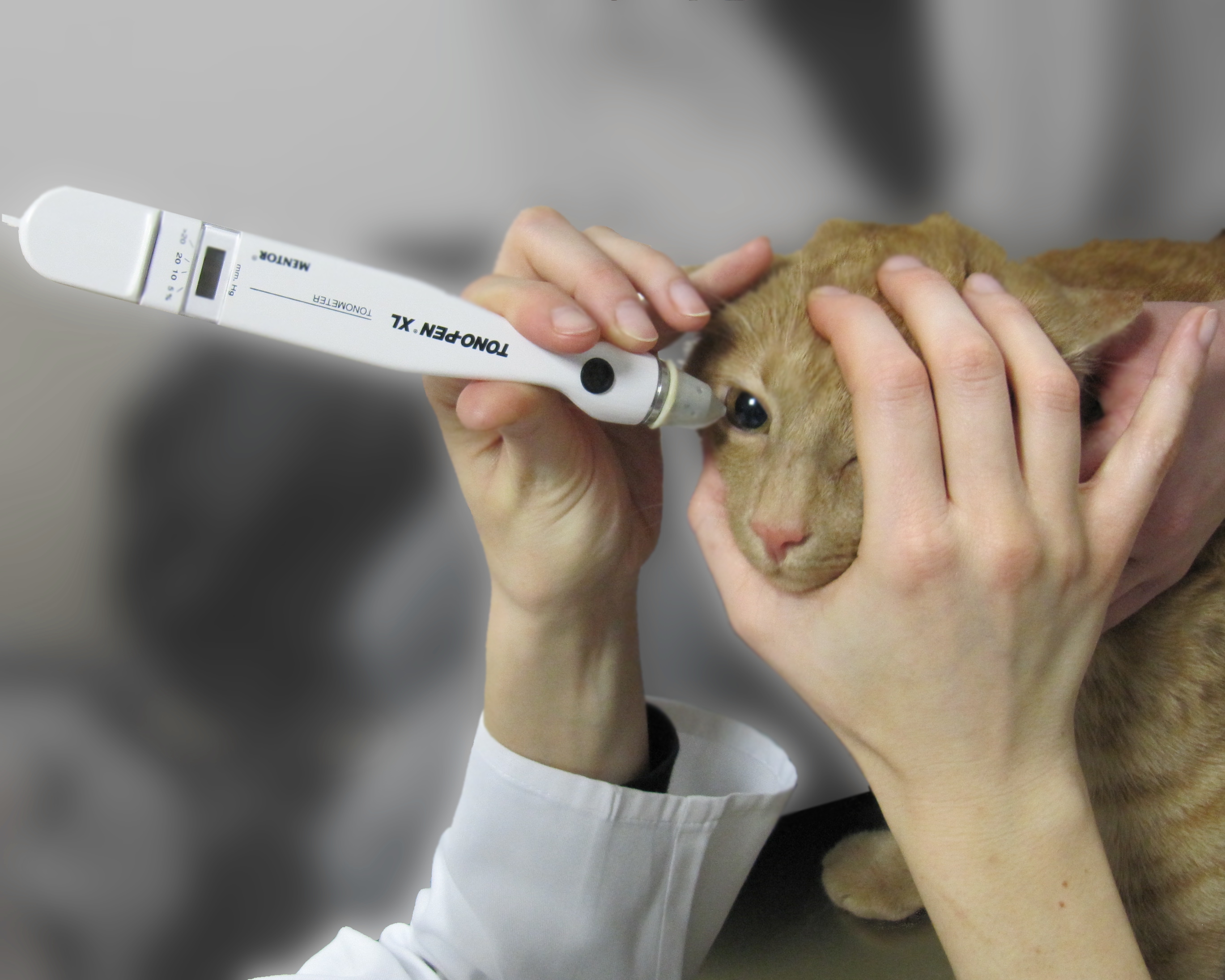 TonoPen: Die Spitze des TonoPens berührt die Hornhaut und misst über deren Abflachung den Augeninnendruck (Applanationstonometrie)