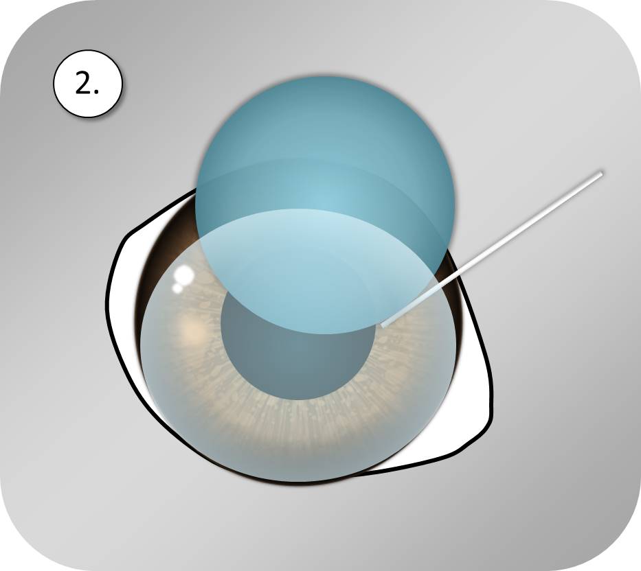Die Hornhaut wird aufgeklappt und die Linse vollständig entfernt.