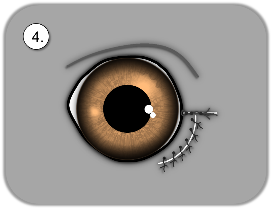 Im nasalen Augenwinkel erfolgt die Lidstraffung und die Wunde wird vernäht.