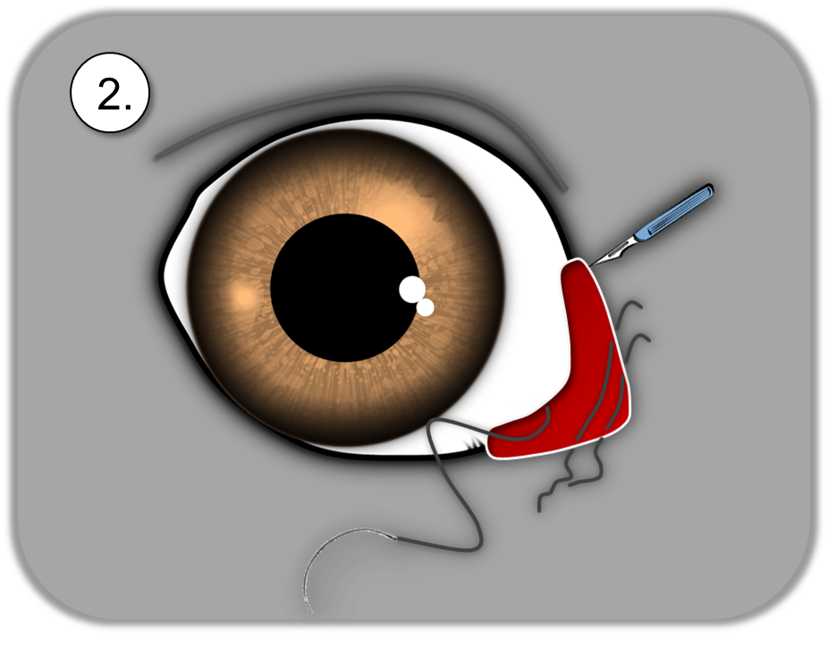 Im nasalen Augenwinkel erfolgt die Lidstraffung und die Wunde wird vernäht.